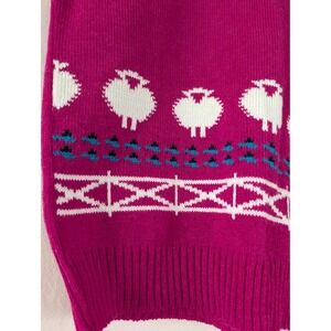 Vintage Pendleton Wool vest in a vibrant pink featuring a charming sheep and fence pattern. This sleeveless knit pullover offers a classic fit with a crew neckline and contrast trim. Crafted from pure virgin wool, it provides natural warmth and a comfortable feel. Lightweight and thin without sacrificing warmth.