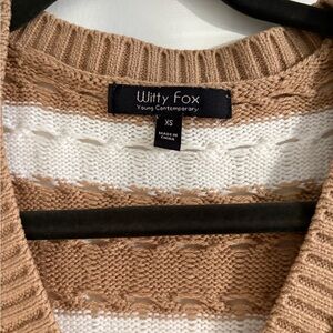 Stylish Tan and White Striped Cardigan