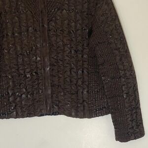 Up for sale is a - UBU Jacket Womens PL Brown Crinkle Quilted Textured Full Zip Collared Petite