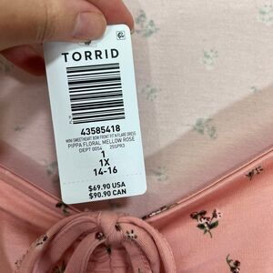 New with tags Torrid Women’s Floral Mini Bow Front Fit & Flare Short Sleeve Dress in the print Pippa Floral Mellow Rose (Pink Floral), size torrid 1 ( 1X ).