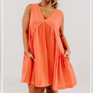 Bright coral sleeveless dress by Impressions. Lightweight and stylish. It has pockets and it’s NWTS! Smoke free home!