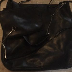 Gucci Vintage Black Leather Bag with altered strap Silver HorseBit Zip T…