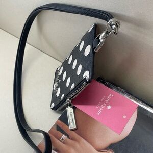 (new+tag) Kate Spade polk dot lanyard ID / card case, zip up, cash slot black