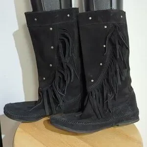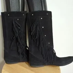 Mister Mint suede fringed moccasin boots