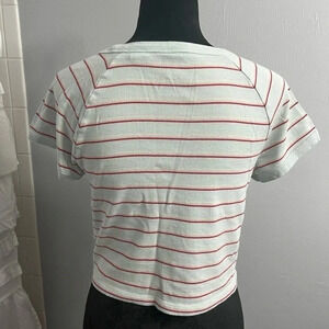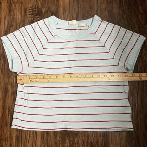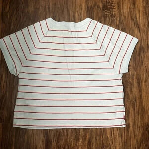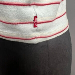 Vintage Levi’s cropped tee, size XXL. Mint green with red, pink and cream horizontal stripes. In excellent condition, no rips tears or stains. 100% cotton, see pictures for measurements.