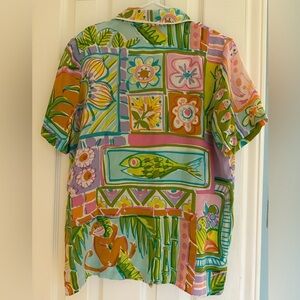 Vintage Bob Mackie Wearable Art Small Pink Green 100% Silk Tropical Fish Monkey