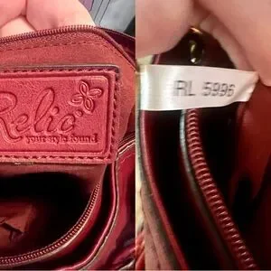 Very good pre-owned condition. Leather is soft and glossy with natural light slouching (normal for Relic leather). No cracking, no peeling, no structural damage. Interior is clean.