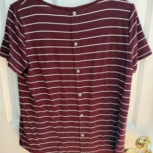 Pink Clover | Size M | Maroon & White Striped Top | Back Button Detail