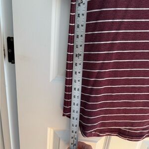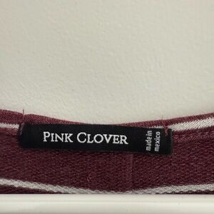 Up for sale: a Pink Clover brand women’s top in size medium. Features a rich maroon and white striped pattern with stylish back button detailing. Soft, comfy, and in excellent pre-loved condition — no flaws to note! 💫