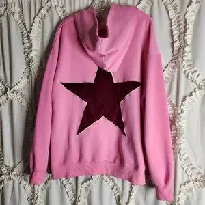 Aelfric Eden Star Print Color Contrast Hoodie Pink Size Large