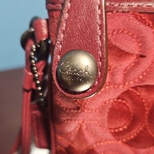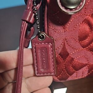 Keywords: coach poppy wristlet red quilted handbag clutch wallet designer luxury y2k vintage kate spade michael kors tory burch dooney bourke bag purse accessory sateen patent leather cherry ruby garnet holiday gift feminine chic small bag evening bag signature c pattern authentic poppy collection