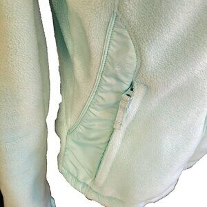 Fleece zip up with pocket, can be cinched at bottom for a perfect fit
