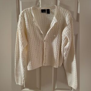 Liz Claiborne Lizwear - Chic Ivory/Cream Cable Knit Cardigan. 100% Cotton, Small