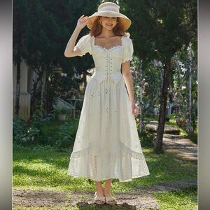Embrace timeless style with this chic white midi dress. Perfect for any occasion, its eyelet design adds a touch of elegance.