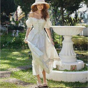 Lacemade Chic White Eyelet Midi Dress