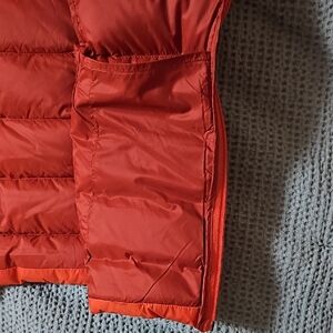Bright and cozy Eddie Bauer down puffer vest in a bold orange shade. Lightweight yet warm — perfect for layering in fall, winter, or cool spring days.