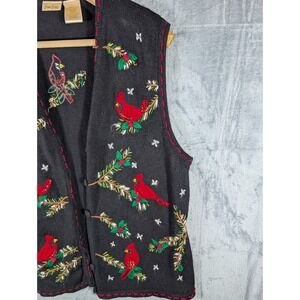 Vtg Bobbie Brooks Woman Plus Cardinal Bird Embroidered Black Sweater Ves 22W 24W