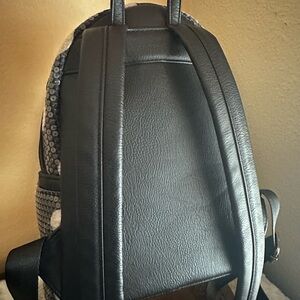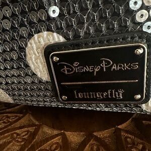 This stylish Loungefly backpack showcases a classic Minnie Mouse design with a chic black and white color scheme. The bag features a playful polka dot pattern and a signature bow, making it a standout accessory for any Disney fan. Perfect for light carrying, this mini backpack adds a touch of whimsy to your ensemble.