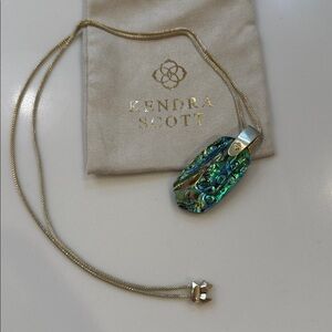 Kendra Scott Iridescent long Green Pendant Necklace with original bag
