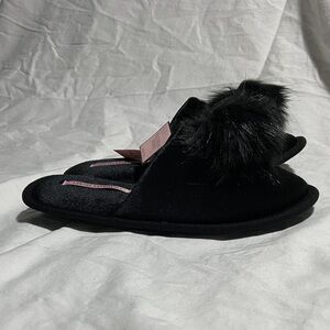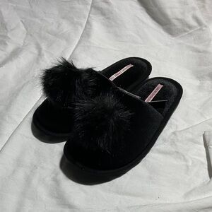 Victoria's Secret Black Furry Pom Pom Slippers