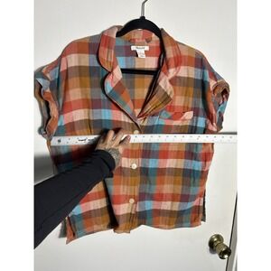 Madewell Plaid Flannel Pajama Top M Short Sleeve Button Up Multi Color Cotton