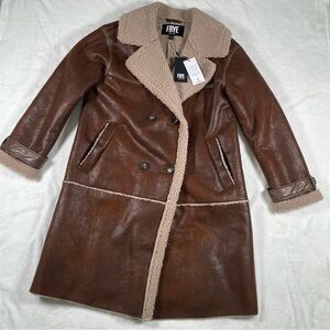 Luxurious brown shearling coat. Double-breasted design. Warm and stylish.