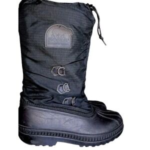 For sale is a pair of Sorel Glacier NL1042-010 women's winter snow boots in black, size US 9, in excellent used condition. These insulated, waterproof boots feature a cozy felt liner and durable rubber sole with great traction, perfect for cold weather and outdoor adventures. The lace-up design ensures a secure fit. Ideal for snow and harsh winters, these vintage-style Sorel boots combine functionality with timeless appeal. Fast shipping! excellent condition smokefree home. Check tag size calf 9