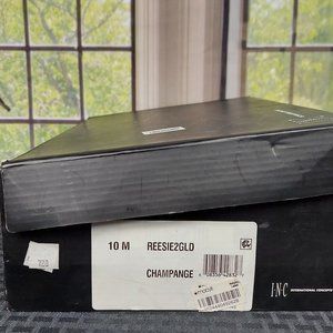 These I.N.C. International Concepts Reesie Rhinestone Bow Evening Sandals in Champagne are in Excellent Shape - only worn 1x with very mild wear to soles and heels. A Gorgeous pair of Beaded Shoes accented with a Double Bow across the toes. The color shimmers in a Gold/Silver combination. They feature an adjustable buckle strap, padded insoles, and textured outsoles to avoid slipping. Size - 10. Total Height - 7.5" (strap to bottom of heel), 4.25" - Heel, and 3.25" - Ball (at widest point). Original Box included with purchase. ***Remember to Bundle & Save***