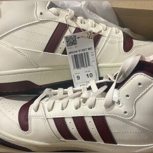 Stylish Adidas sneakers with a white and maroon color scheme. High-top design for a modern look.