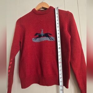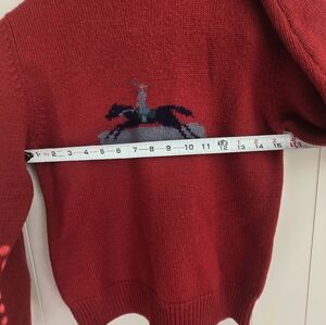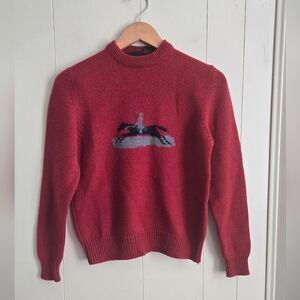 Kids Red Crewneck Sweater with Horse Design-Size L -100%WOOL