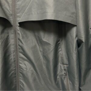Excellent like new Champion lightweight hooded anorak windbreaker. Modern 2010s-era design featuring a half-zip pullover style with breathable mesh lining. Easy neutral gray color that works year-round.