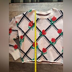 Anthropologie Maeve White Sweater with Red Rose Design