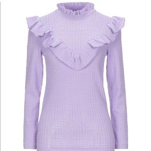 Sandro lilac lavender purple ruffle knit pointelle top sweater S