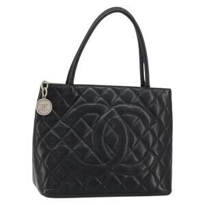 CHANEL Matelasse Reprint Tote Bag Caviar Skin Black CC Auth 160246A