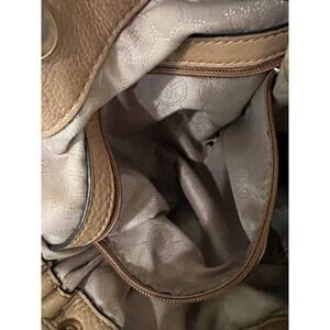 In fair condition. Well loved but could be cleaned. Interior has some spots. Gold hardware.