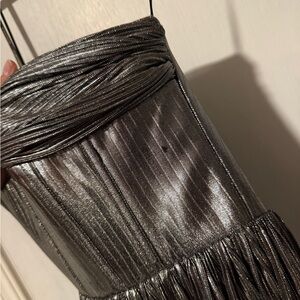 NEW Bronx and Banco Florence Gown in Silver Metallic Strapless Formal Maxi Dress