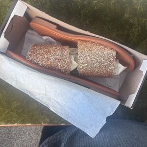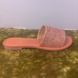 Everglades Rose Gold Glitter Slide Sandals Women Size 8 Sparkly Flat Slip On