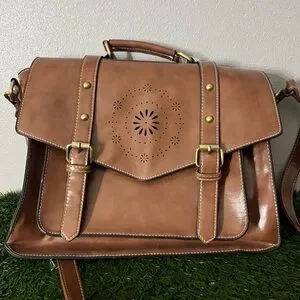 This stylish brown leather satchel is perfect for any occasion. Featuring a classic design with intricate detailing, it offers both functionality and elegance. Ideal for the modern woman on the go.