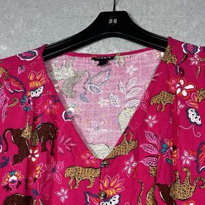 Torrid Dress Womens Sz 10-12 Pink Blue Paisley Tigers Buttons Boho Chic No Belt