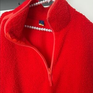 Cozy half-zip sweater. Soft fleece texture. Perfect for layering.