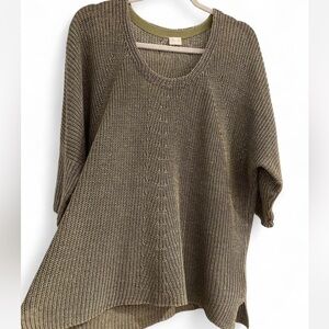 Poetry Linen Knit Top Large 12 / 14 Olive Green