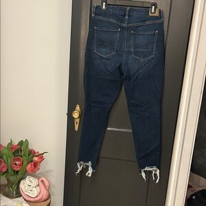 American Eagle Outfitters Women's Distressed Dark Blue Cropped Jeans