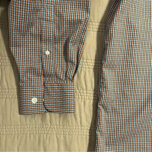 Duluth Trading Wrinkle Fighter button down Men’s long sleeve shirt. Orange and light blue small checkered pattern. Excellent condition, like new. Only worn once and washed in delicate cycle and air dried, once.