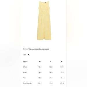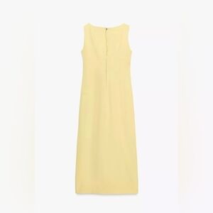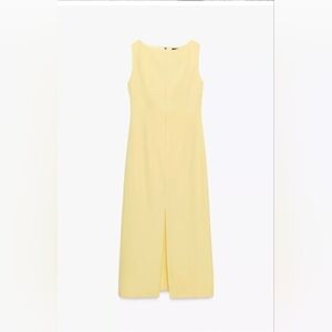 Chic Zara midi dress in light yellow. Sleeveless design with a stylish slit. Perfect for modern elegance.