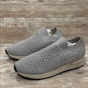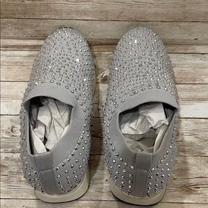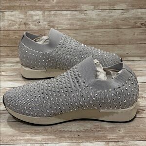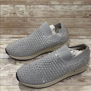 Kenneth Cole Reaction Silver Jewel Studded Slip-On Sneakers Size 8.5W NWT