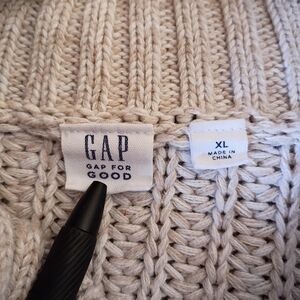 Gap 100% Cotton Thick Tunic Sweater Unisex XL Turtleneck Neutral Knit EUC 0007