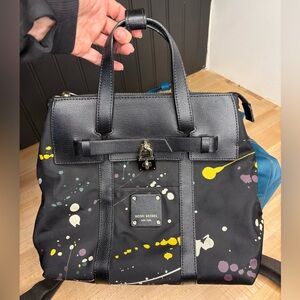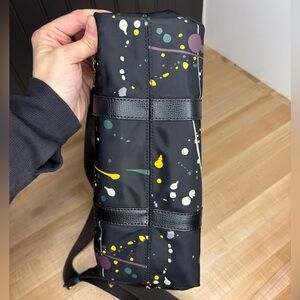 Henri Bendel JetsetterS! Large in teal/jade and small splatter paint. Both nylon and will share the removable straps as there is only one set. The teal had monogrammed letters that I removed on the leather patch and has some discoloring as shown in photos. The splatter is in excellent condition. Handles are intact. Color for the teal is most accurate in 8th photo.