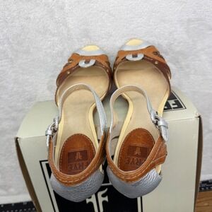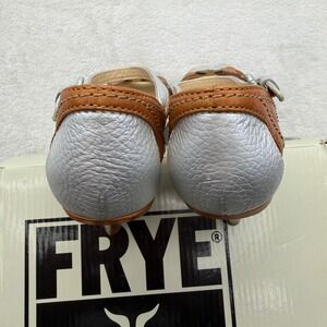 FRYE Agnes Woven Leather Silver Brown Peep Toe Heel Sandals Sz 6.5M MSRP $198