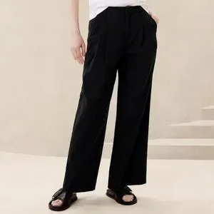 Banana Republic Explorer Nouve Wide Leg Pleated Pants Black 8 Cotton