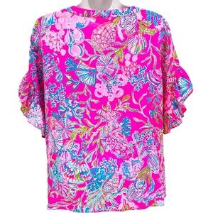 Lilly Pulitzer Quinna Top Pink Isle Shell Me Something Goo XS